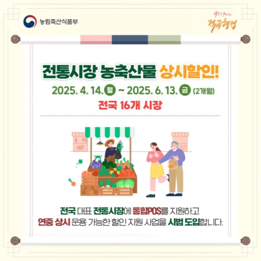 국내산 신선 농축산물을 보다 저렴하게 구매하고, 전통시장을 이용하는 소비자에게 직접적인 혜택을 제공하는 정부지원 할인 정책이 본격 시행됩니다.